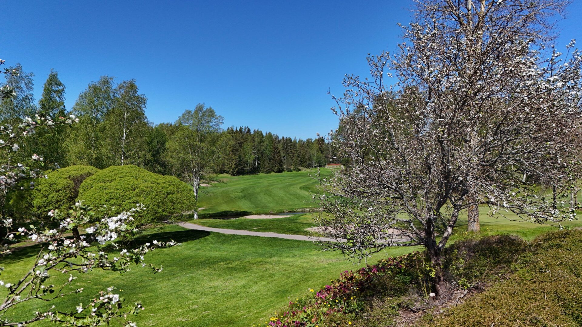 Liiallinen optimistisuus tai henkselien paukuttelu ei yleisesti kuulu kentänhoidon ammattisanastoon. Ihan ok tarkoitti kuitenkin todella hyvää ja se oli nähtävillä toukokuun lopussa koko kentällä. Kaikki puut eivät olleet vielä lehdessä, mutta muuten kenttää katsoessa ei voinut arvella ollaanko toukokuussa vai keskellä kesää. Luonnonvoimat olivat talvella armollisia ja kentänhoito hoiti loput. Golfmuodissakin parkkipaikalla näkyi runsaasti lyhyitä housuja, joten kesä saapui Nevas Golfiin toukokuun lopulla.
