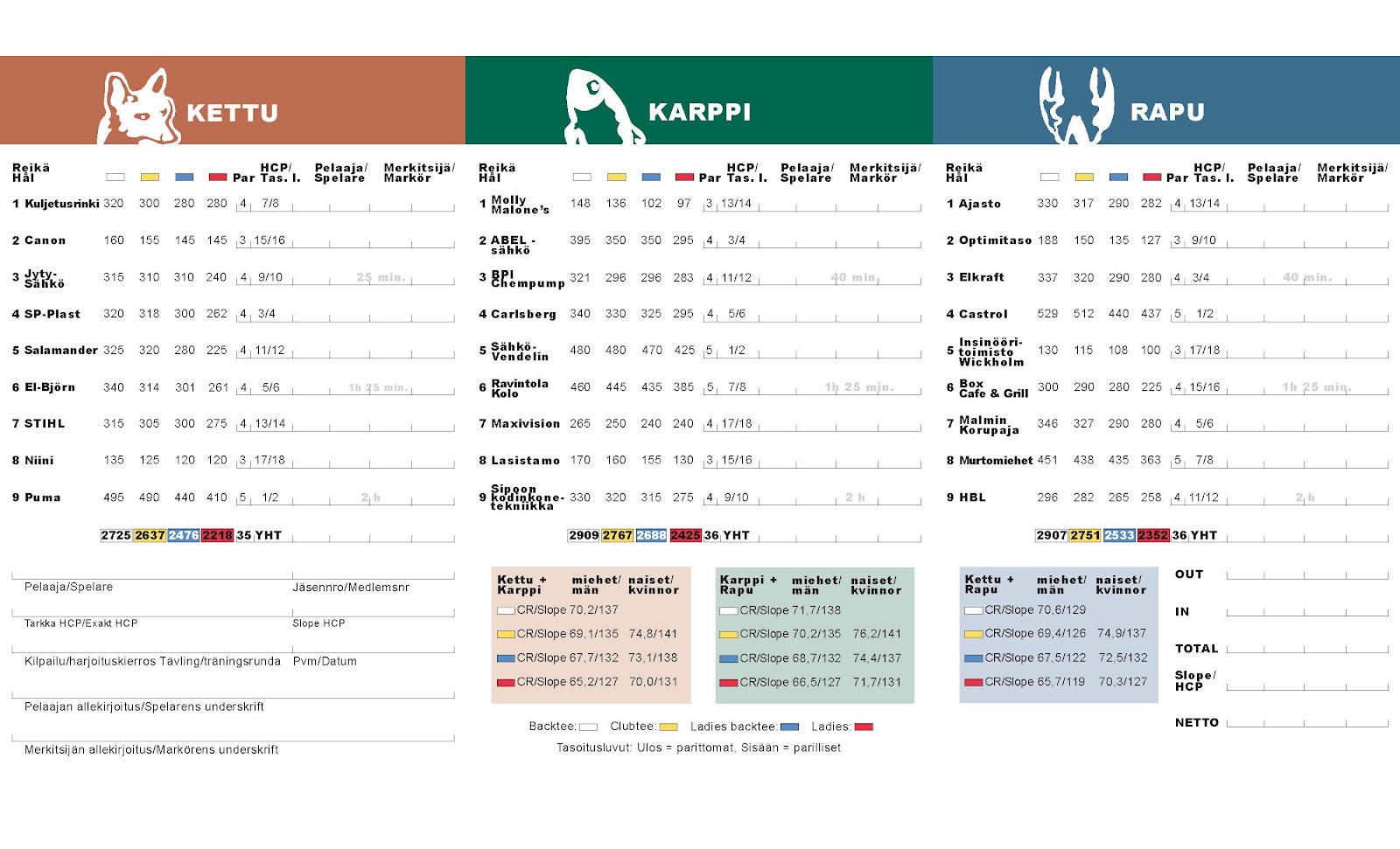 Nissinen haluaa korostaa kolmen 9-reikäisen kentän eroavaisuutta keskenään. Kettu, Karppi ja Rapu ovat omanlaisiaan ja yhdistelmien vaihtuvuudella mielekkyys pelaamiseen kasvaa. ”Ylimääräinen” ysi tarjoaa lisää pelimahdollisuuksia ja pelaamaan pääsee usein melko lyhyelläkin varoitusajalla.