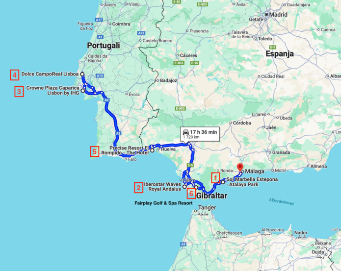 Golf Plaisirin Roy Kanerva hyppäsi Malagassa autoon ja seuraavien päivien aikana hän ehti vierailemaan kuudessa eri kohteessa, kahdessa eri maassa. Kilometrejä viikkoon mahtui yli 1800.